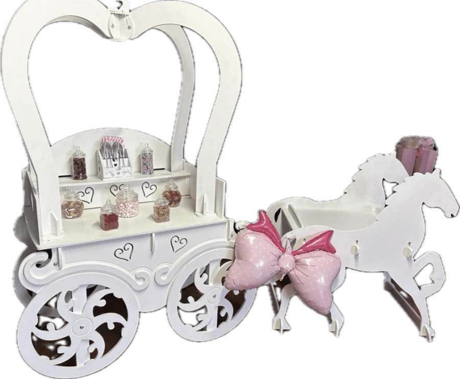 Our sweet cart is not just any sweet cart - it's a delicious experience waiting to happen! With its charming design and versatile use, our sweet cart can be the highlight of your event. Whether you want to use it with or without the horses add-on, the options are endless. 🐴✨